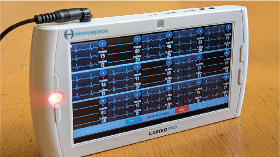 The Cardio-Pad is a medical equipment that performs electrocardiogram and